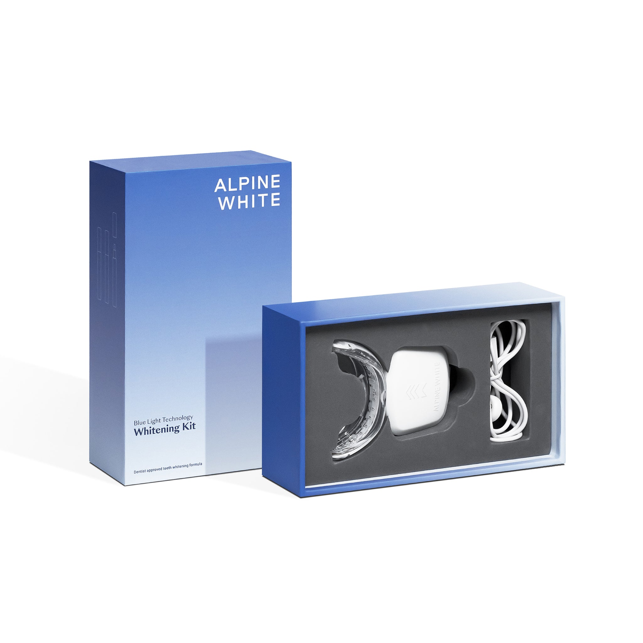 ALPINE WHITE Whitening Kit – Professionelles Zahnbleaching für Zuhause I Whitening LED mit Blue Light Technology und Whitening Gel für sichtbar weißere Zähne in nur 3 Tagen I Nur 15 Minuten täglich